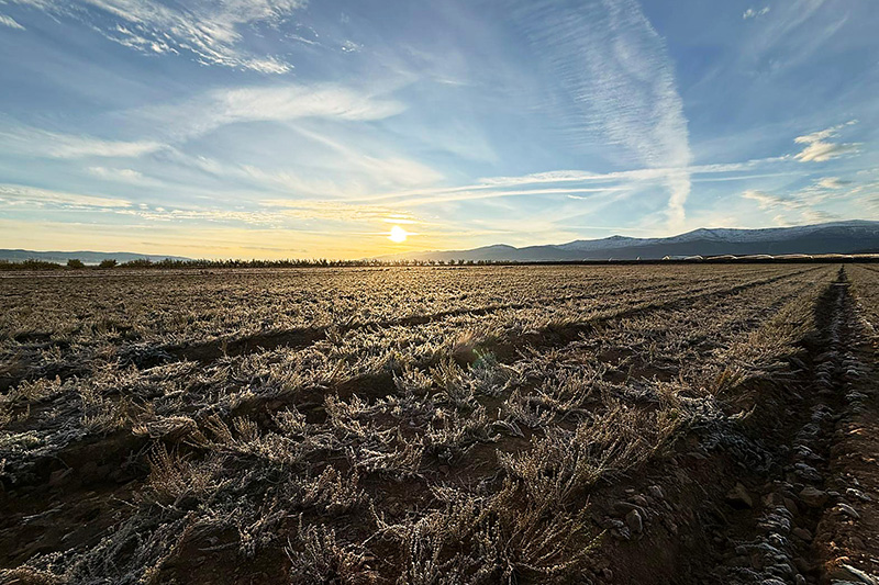 Located in the Guadix region, between Sierra de Baza and Sierra Nevada — home to Mulhacén, the highest peak in mainland Spain — this is not just where we operate, it’s why we exist. Snow-covered mountains just a few kilometers from our fields create a landscape few expect in southern Spain.